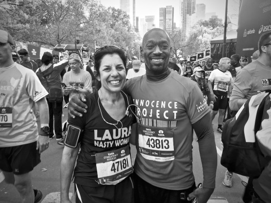 He is running the marathon for the Innocence Project. He is running the marathon for the Rutgers Law School clinic. He is running the marathon for his mom and his dad. And yes, he is running the marathon for himself.